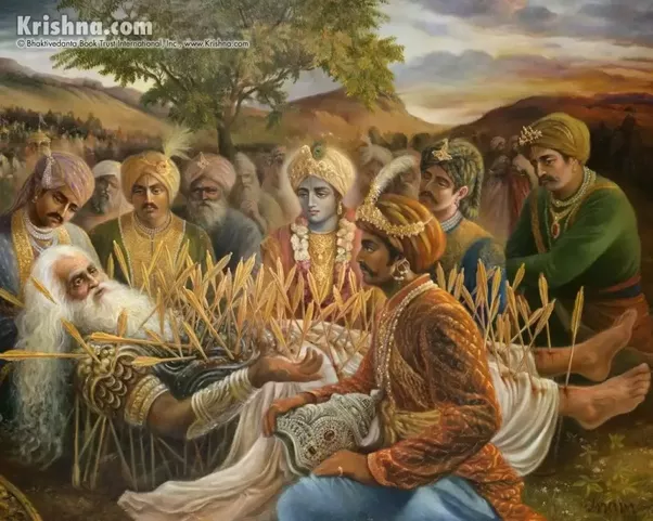 Dette er fra da Arjuna hadde skadet Bishma, og han ligger klar for å dø. Arjuna går bort til Bishma, for å spørre om det er noe han kan gjøre for Bishma (tatt i betraktning at han har også forårsaket døden som snart inntrer). Bhisma svarer: